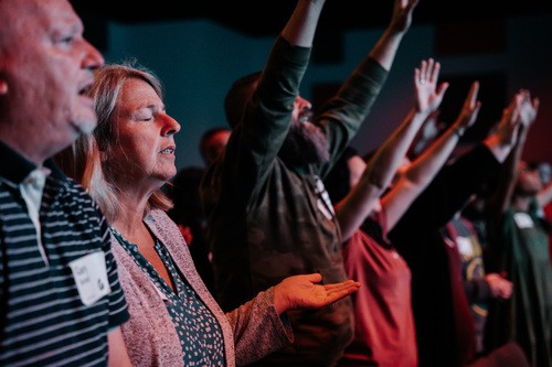Corporate church around the stage and church community around the table. Worship, generosity, community, & prayer.